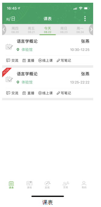 点击课程中心-我的课表,可根据教学周查看对应课程表,默认显示为本周课表;