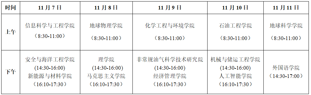 上午8:30-11:30,下午14:30-17:30,具体安排如下表: