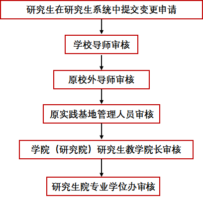 •校/院级基地甲→校/院级基地乙:专业学位办删除原来的信息,再由专业学位办将该学生信息导入变更后的校/院级基地库;