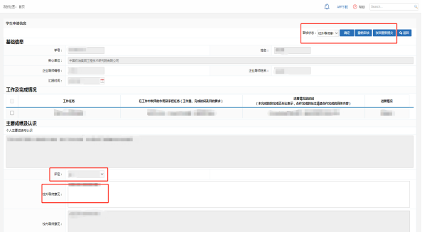 注:审核:表示同意;撤销审核:撤回之前的审核意见;驳回重新提交:不同意,需要学生重新修改后提交。