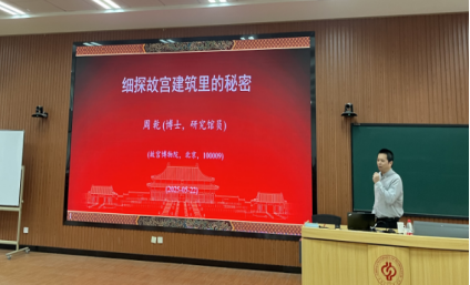 周乾教授以故宫三大殿(太和殿、中和殿、保和殿)的形制变迁为引,揭晓了中国古代建筑中“以退为进”的防火智慧。随后周乾教授借助大量高清图片与相关影视片段,讲述皇家冰窖的巧妙选址、冰镇酸梅汤、蜜渍鲜果等宫廷冰食,生动再现古人“以冰御暑”的智慧。接下来周乾教授以紫禁城武英殿旁的浴德堂为例,向学生展示了浴德堂的热水供应系统、恒温系统、采光系统等设置。最后周乾教授结合影视片段,展示了紫禁城“千龙吐水”的排水奇观。此排水系统集科学性、艺术性、文化性于一体,是紫禁城丰富历史文化和古代工匠建筑智慧的体现。